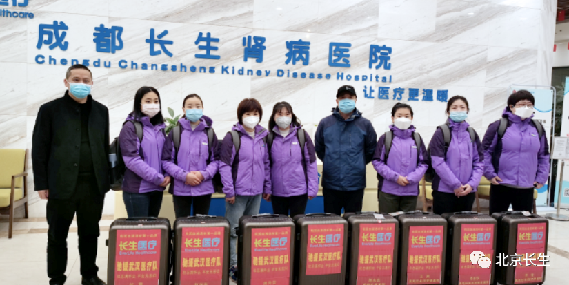 二月、集团组织的定向支援武汉血液透析领域医疗队逆行出征 武汉封城,牵动了全国人民的心,在疫情最为严峻的时刻,集团决定定向支援武汉血液透析领域,为解决武汉透析病床一床难求的难题贡献一份力量。在征得武汉防控指挥部的许可后,来自黑龙江、四川的8名队员于2月23日出征武汉,开始了为期48天的支援工作,4月8日平安返程。在汉期间,队员们负责为天霖医院收治各医院分流的确诊病例治愈出院的以及尚在隔离观察期的被排除的疑似病例尿毒症病人透析。他们英勇无畏的抗疫精神得到了中国非公立医疗机构协会、武汉市政府和黑龙江省民营医疗机构协会、四川省民营医疗机构协会的表彰。