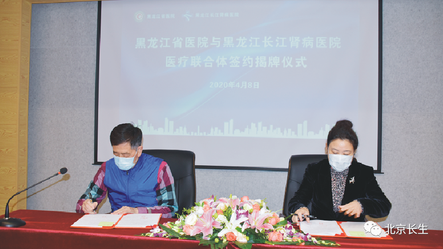 4月8日,黑龙江省医院与黑龙江长江肾病专科医院医疗联合体签约揭牌仪式在黑龙江长江肾病医院举行。黑龙江省医院副院长宋雷凤、外联部主任杨宝林,长生医疗集团总裁于治洲,黑龙江长江肾病医院副院长孙凤玉、张艳迪出席签约挂牌仪式。宋雷凤副院长和于治洲总裁在签约书上签了字。